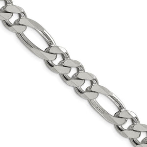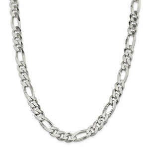 Generously sized, solid links of sterling silver create the sleek style of this masculine figaro chain that measures 10.75mm in width. A user-friendly, lobster clasp keeps it securely fastened. 28 inches in length.