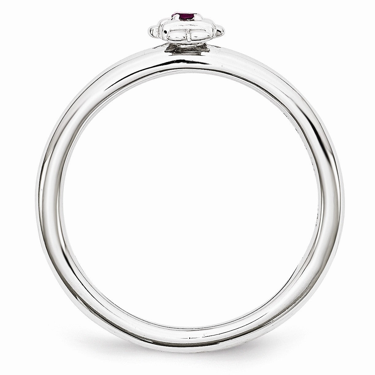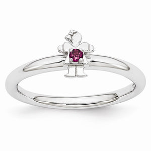 Rhodium Plate Sterling Silver Stackable Rhodolite Garnet 7mm Girl Ring
