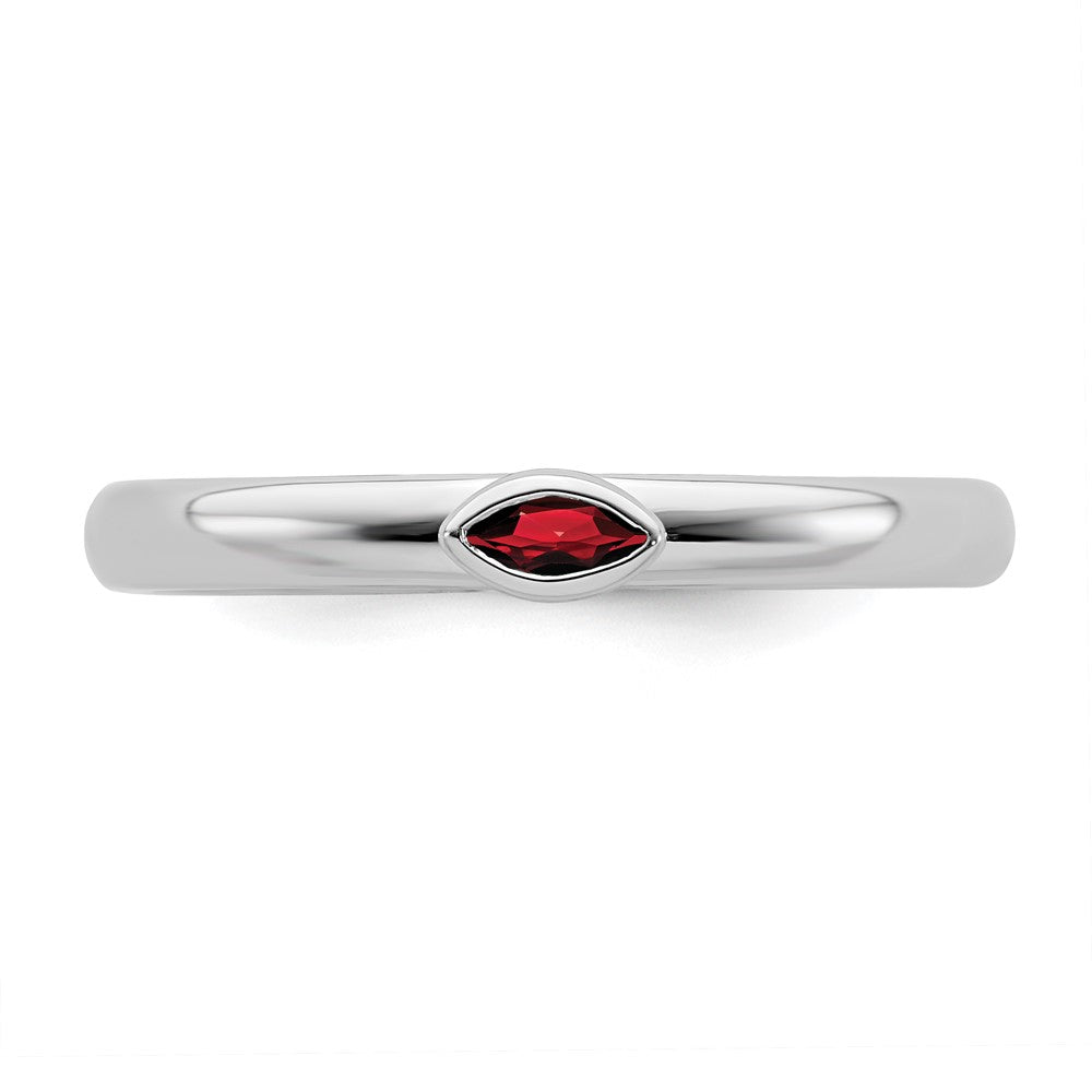 Garnet, January's birthstone symbolizes romance, love and passion; it is also believed to bring inspiration. This 2. Mm band fashioned from rhodium plated sterling silver is bezel set in a low profile mounting with a 4 x 2mm genuine marquise garnet that will add a touch of color to your finger. The color range varies on all genuine gemstones so please allow for slight variations in shades (medium to dark red to brownish orange). The color on your screen may also not reflect actual gemstone color due to variations in monitors. Gemstone treatment: natural, not enhanced. Guaranteed to fit together perfectly with all of the mix and match Stackable Expressions rings.