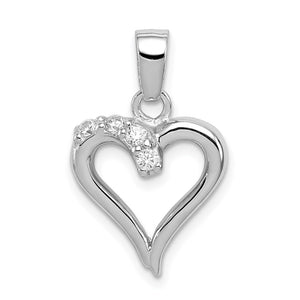 Sterling Silver and Cubic Zirconia 15mm Open Heart Pendant