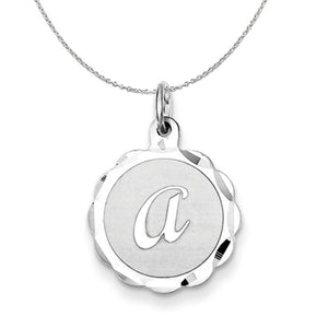 The brocaded disc with its contrasting satin and polished design adds a touch of glamour to your favorite initial. It is fashioned from solid sterling silver, finished with a classic jump ring that fits up to a 3mm width chain and has a polished back that is suitable for engraving. Includes a 1.25mm, 16 inch sterling silver cable chain.