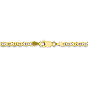 This polished anchor or mariner chain made of 10k yellow gold features a solid concave design that mimics the cable used to anchor boats with a vertical bar in the middle of each link. The 3mm width. 22-inch length makes a beautiful necklace for both men or women and is perfect paired with your favorite pendant or other chains for a layered look. Closes with a reliable lobster claw clasp.