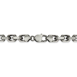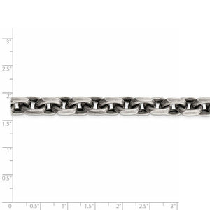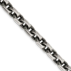 This antiqued cable chain with its simple style and oxidized finish is a great choice for those looking to make a unique fashion statement. The beveled edge oval links on this rugged, sterling silver chain measure approximately 8.6mm by 13mm and close with a secure, lobster-claw clasp. 22 inches in length. Made in Italy.