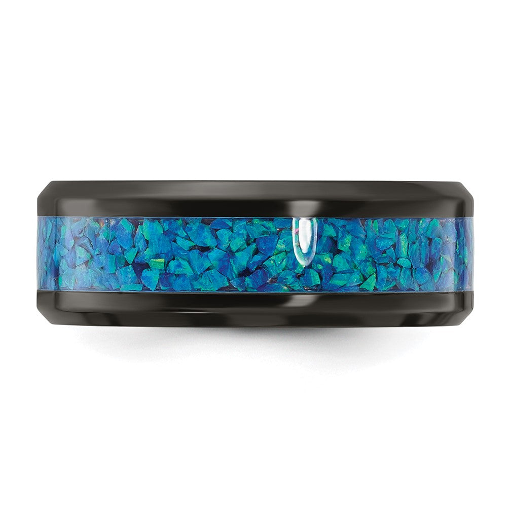 8mm Black Zirconium Blue Imitation Opal Inlay Standard Fit Band