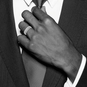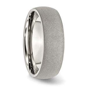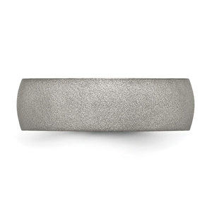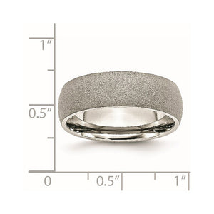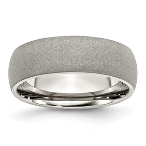 Elegant, understated and uniquely modern! This 7mm width band created from 316L stainless steel features a domed shape with a textured stone finish and a polished standard fit shank. Suitable for engraving.