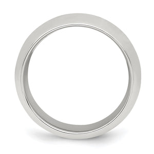 A traditional unisex band created from rhodium-plated sterling silver featuring a classic dome design with a tarnish-resistant polished finish and a comfort fit shank. It is approximately 2mm in thickness (standard weight) and 8mm in width. Suitable for engraving. Made in the U.S.A. This is a made to order item and is estimated to ship 12/26/2025