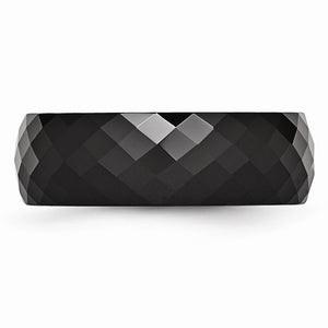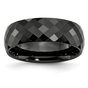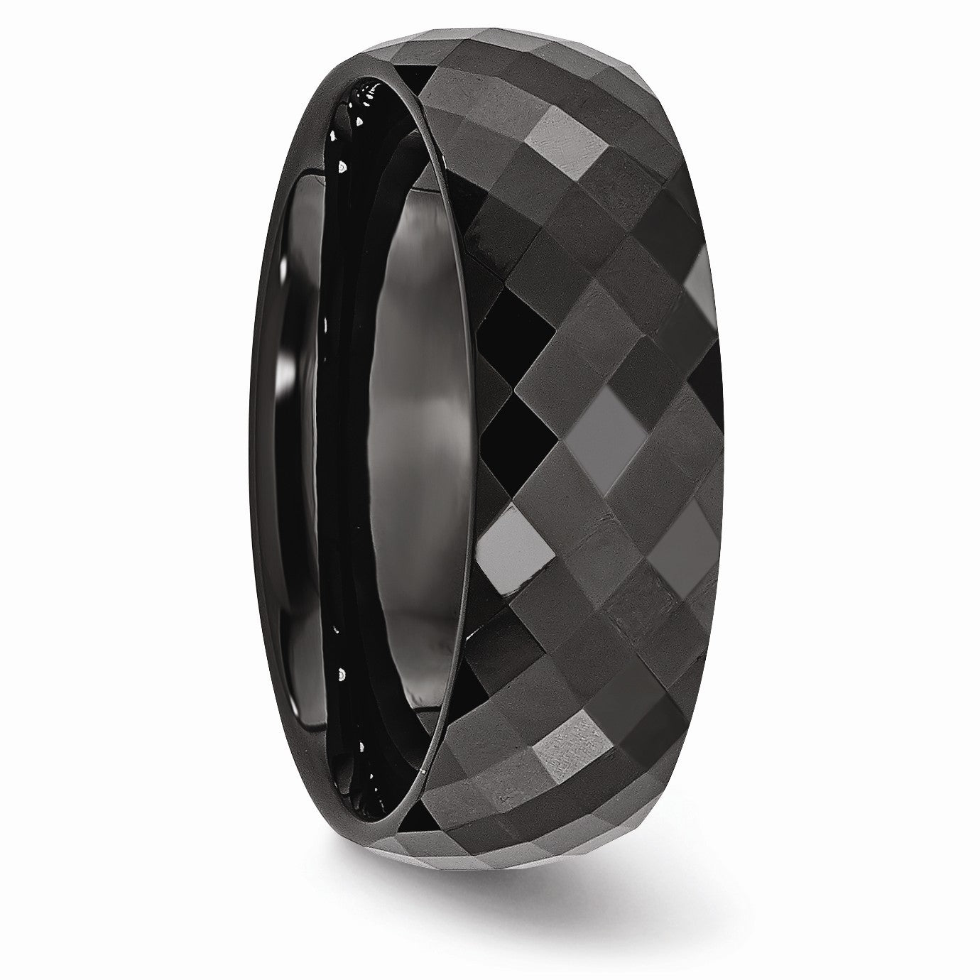 Ceramic is the new, lightweight fashion material that is strong enough to withstand your daily wear and tear and guaranteed to retain its high polish and color. This unisex, faceted band makes a classy wedding band or fashion accessory. The comfort fit band is 7. Mm wide and available in whole and half sizes 6-13.