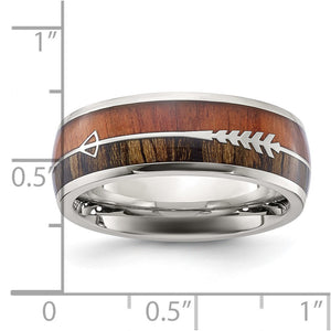 Men's 8mm Stainless Steel Wood & Enamel Inlay Arrow Design Domed Band