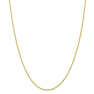 This beautiful 24-inch necklace chain intricately woven from 10k yellow gold features a solid link, Parisian wheat pattern with a smooth polished finish. It is 1.5mm in width and closes with a lobster-claw clasp for a reliable fit.