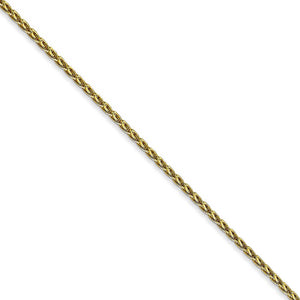 This beautiful 20-inch necklace chain intricately woven from 10k yellow gold features a solid link, Parisian wheat pattern with a smooth polished finish. It is 1.5mm in width and closes with a lobster-claw clasp for a reliable fit.