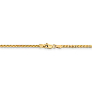 This 1.8mm width, solid link spiga chain is crafted from diamond-cut 14k yellow gold and closes with a lobster clasp. 20 inches in length.
