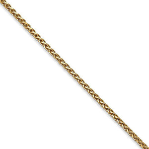This 1.8mm width, solid link spiga chain is crafted from diamond-cut 14k yellow gold and closes with a lobster clasp. 16 inches in length.