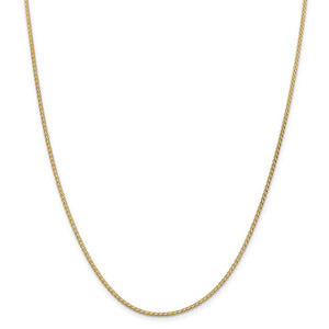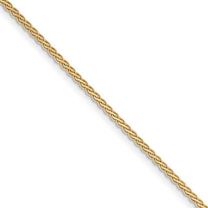 Wrap yourself in golden luxury with our elegant flat solid link wheat chain crafted from gleaming 14k yellow gold. A strong lobster-claw clasp keeps this modest 1.8mm chain safely fastened. 18 inches in length.