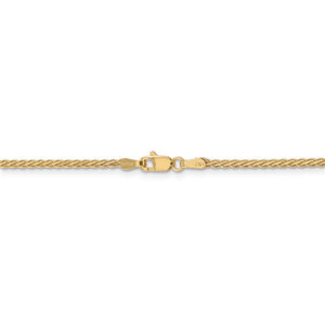 Wrap yourself in golden luxury with our elegant flat solid link wheat chain crafted from gleaming 14k yellow gold. A strong lobster-claw clasp keeps this modest 1.8mm chain safely fastened. 20 inches in length.