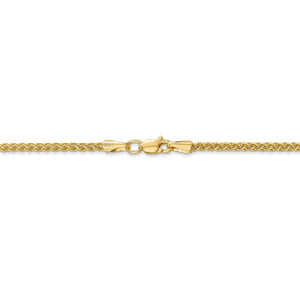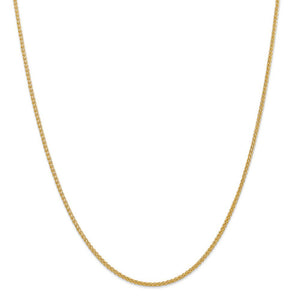 Strands of 14k yellow gold are braided and woven together to create a spectacular wheat pattern for this 2mm chain that closes with a lobster-claw clasp. Looks great alone, layered with multiple chains or pair it with a gold charm or pendant to complete your desired look. Hollow link design. 18 inches in length.