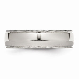 This comfort fit band crafted with 316L stainless steel features a domed design detailed with grooved and beaded edges. It measures 6mm in width and is suitable for engraving.