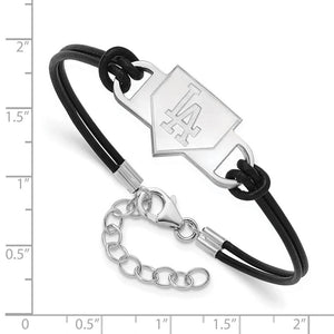 Sterling Silver MLB LA Dodgers Homeplate Leather Bracelet, 7 Inch