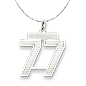 Celebrate your favorite sports player, lucky number or milestone date in your life with a prominent rhodium-plated sterling silver charm. Each laser-cut satin and polished number is approximately 15mm (9/16 inch) in length, which is finished with a 3mm top bar and classic jump ring that will accommodate up to a 3mm chain. Includes a 1.25mm, 20 inch sterling silver cable chain.