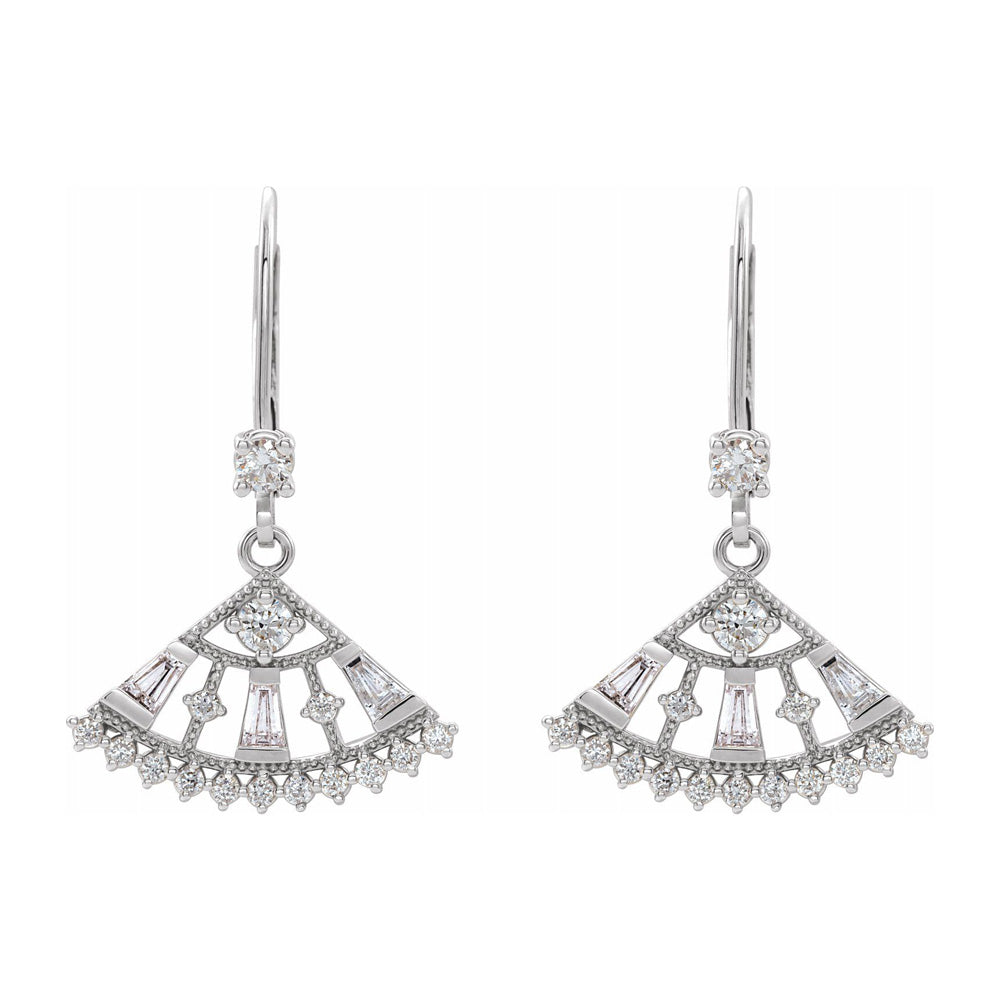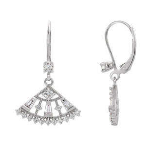 14K White, Rose or Yellow Gold 3/4 CTW Diamond Lever Back Fan Earrings