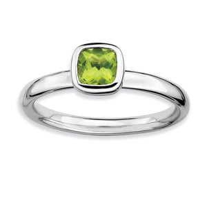 Silver Stackable Cushion Cut Peridot Solitaire Ring