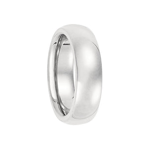 A classic style domed band set in platinum, the rarest and heaviest precious metal on earth. It has incredible strength, a natural bright luster and is hard to scratch making it the most durable choice for everyday wear. This 6mm wide comfort fit band has a thickness of 2.5mm, which is approximately 15% greater than the standard dome style comfort fit bands. Suitable for engraving.