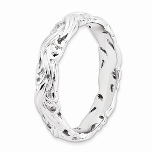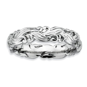 Make it simple and stylish with bands of different textures, finished, widths and colors! This rhodium plated sterling silver band features an ornate design with a polished finish and measures 4. Mm wide. Guaranteed to fit together perfectly with all of the mix and match Stackable Expressions rings.