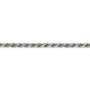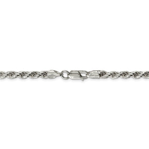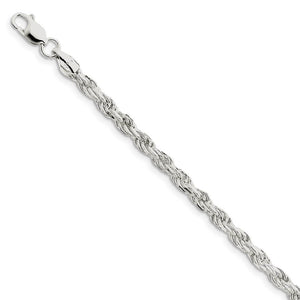 Rope chains made of twisted and braided sterling silver enhanced with diamond-cuts are extremely popular because they offer a classy design with maximum shine. Flexible and strong, this elegant chain measures approximately 4.6mm in width and features a solid link construction with an easy to use lobster claw clasp. 9 inches in length. Made in Italy.