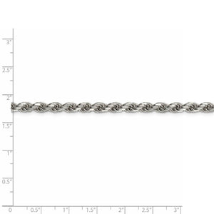 Rope chains made of twisted and braided sterling silver enhanced with diamond-cuts are extremely popular because they offer a classy design with maximum shine. Flexible and strong, this elegant chain measures approximately 4.6mm in width and features a solid link construction with an easy to use lobster claw clasp. 7 inches in length. Made in Italy.