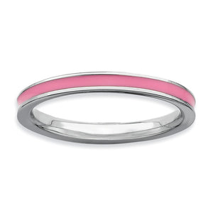 • Create the perfect stack with enameled bands available in 10 vibrant colors. Featuring a center stripe of pink enamel this 2.5mm sterling silver band is finished with tarnish resistant rhodium plating so it will retain its bright white finish. Guaranteed to fit together perfectly with all of the mix and match Stackable Expressions rings.