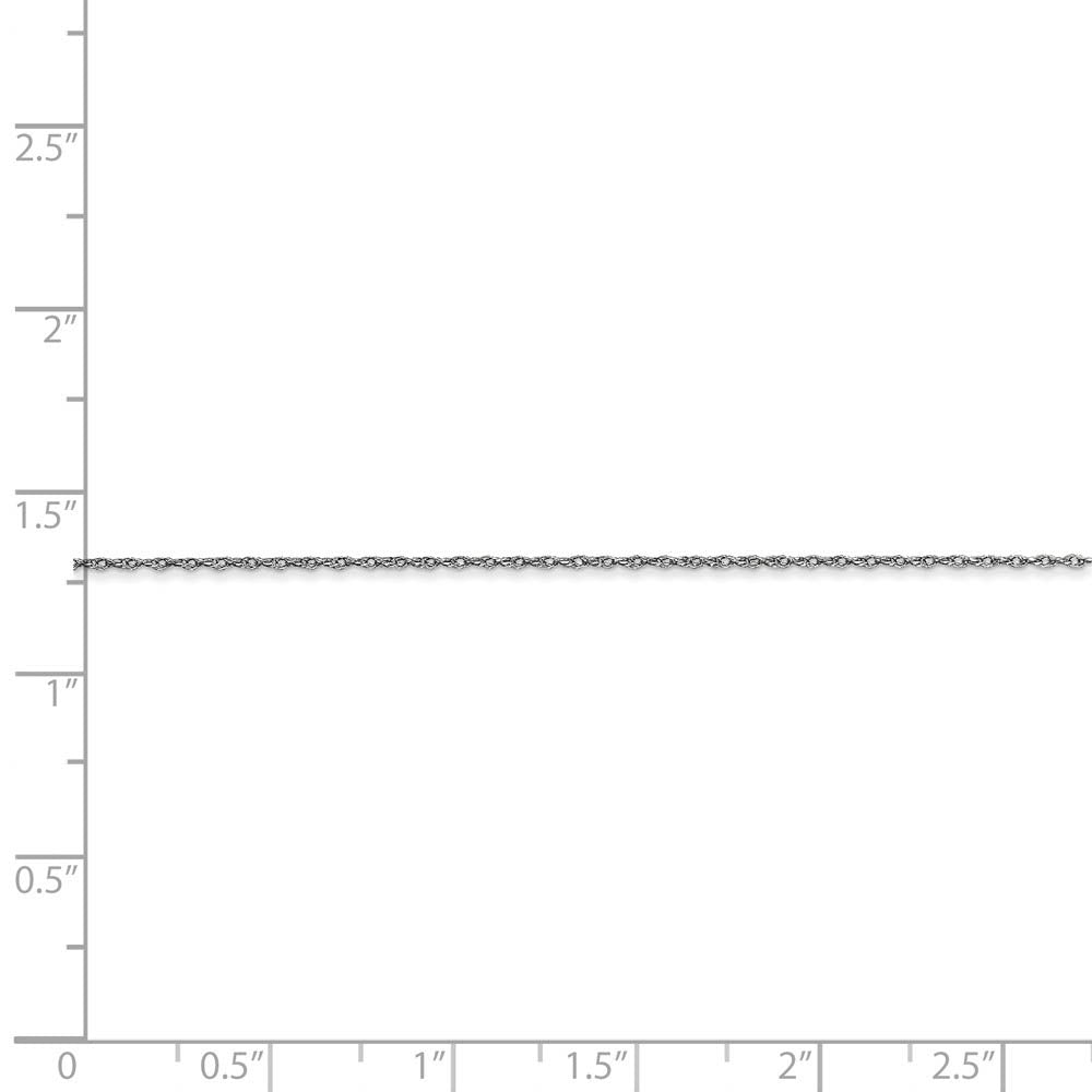 Solid, rhodium-plated 10k white gold shimmers in this delicate .50mm cable rope chain crafted in the USA with a spring ring clasp. It is perfect for displaying lightweight gold charms or pendants. 18 inches in length.