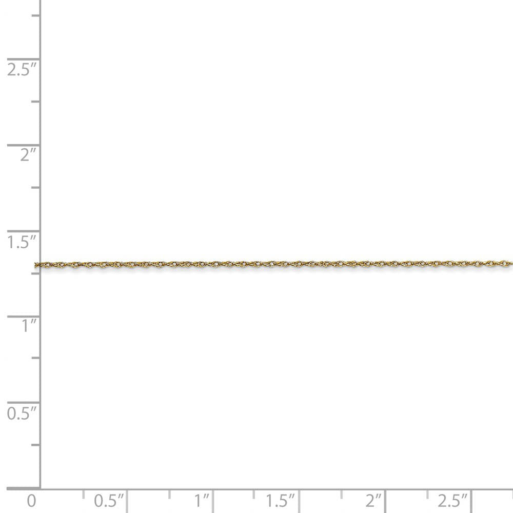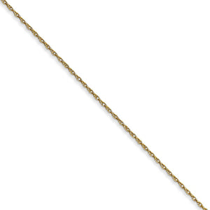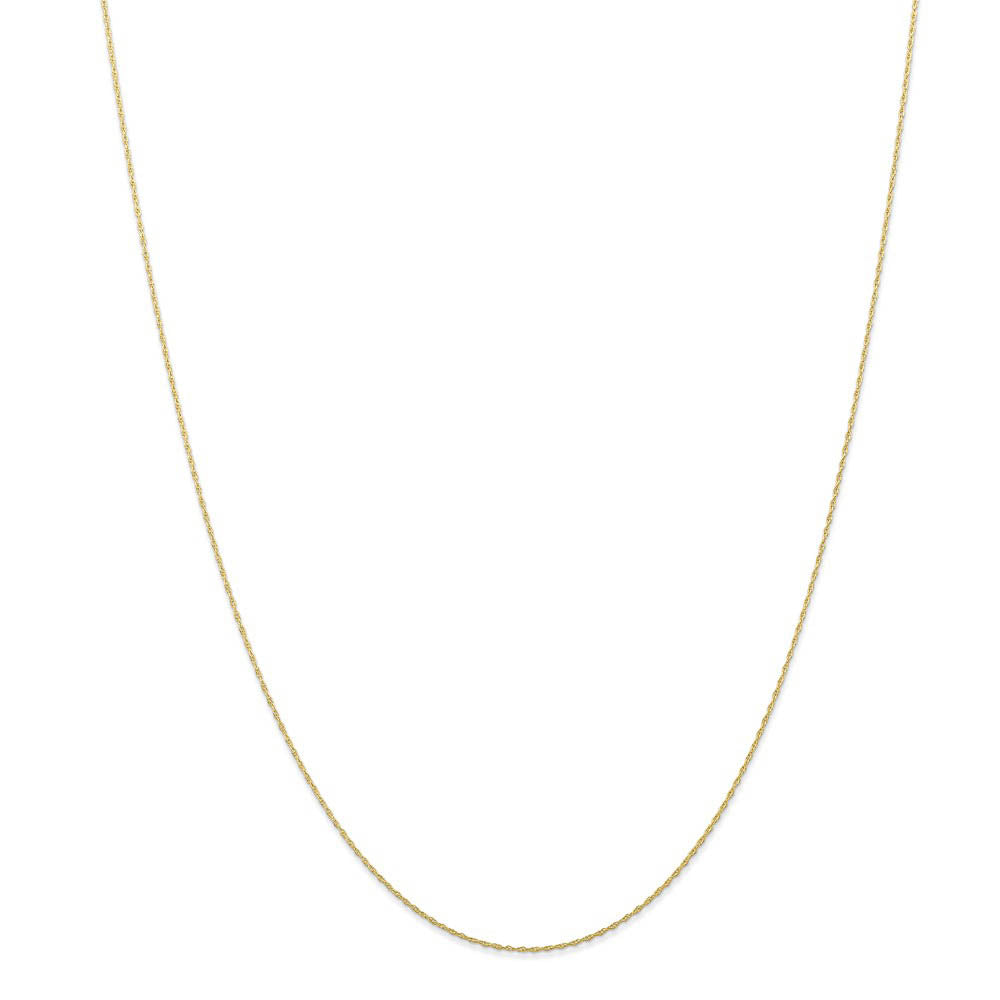 • Solid 10k yellow gold shimmers in this delicate 0.50mm cable rope chain crafted in the USA with a spring ring clasp. It is perfect for displaying lightweight gold charms or pendants. 18 inches in length.