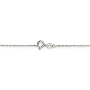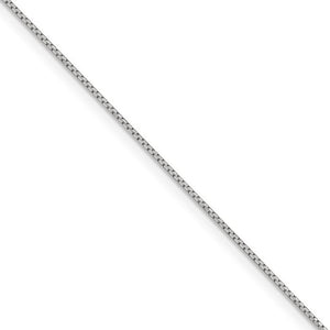 The mirror box links on this delicate 0.6mm chain reflects light off its many surfaces thanks to the 8-sided design and the diamond-cut finish. It is crafted from sterling silver with an easy to use spring ring clasp. 16 inches in length. Made in Italy.
