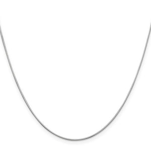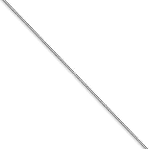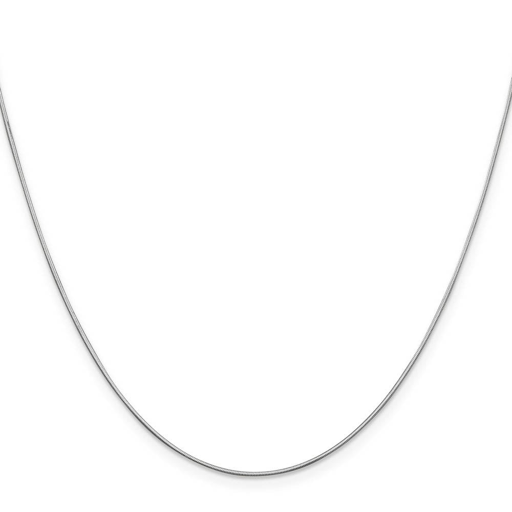 A soft and flexible snake chain with an eight-sided, diamond-cut design provides a sleek and shimmering effect. This delicate 0.8mm width 18-inch long solid link necklace fashioned from rhodium-plated 14k white gold is finished a secure lobster-claw clasp to keep it safely in place.