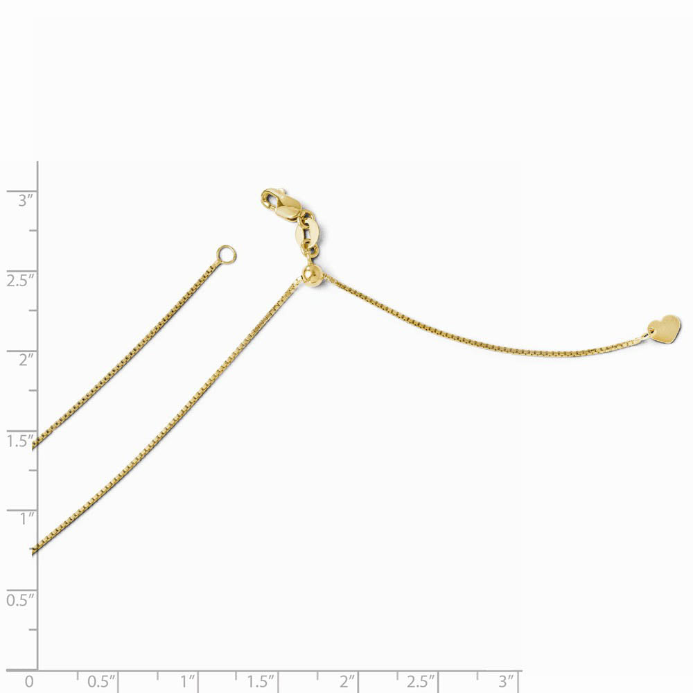 Simple, classic and ready for your favorite pendant, this delicate 14k yellow gold box chain is 0.8mm in width and features a slide mechanism with a lobster clasp that adjusts to any length up to 22 inches. Made in Italy.