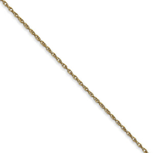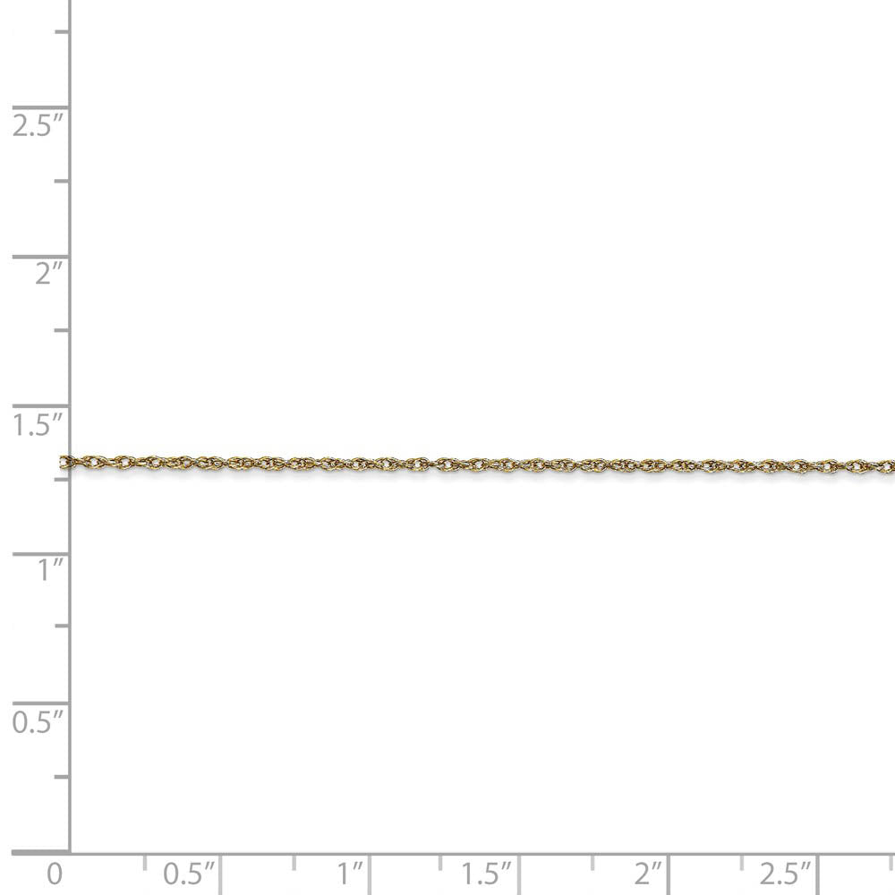 Solid 10k yellow gold shimmers in this delicate 0.95mm cable rope chain crafted in the USA with a spring ring clasp. It is perfect for displaying lightweight gold charms or pendants. 16 inches in length.