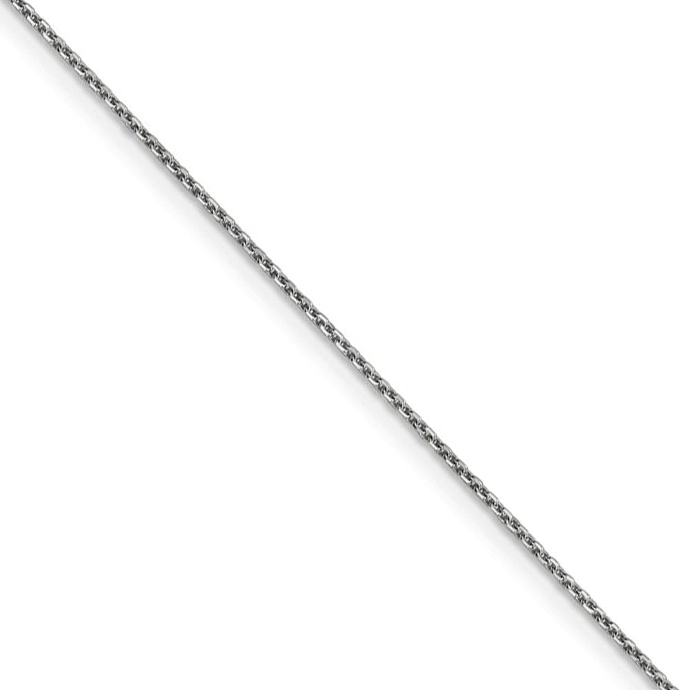Indulge in the luxury of rhodium-plated 14k white gold with this delicate, 00.95mm cable chain enhanced with diamond-cut links. It includes a lobster-claw clasp and the solid link design is perfect for lightweight gold charms or pendants. 22 inches in length.