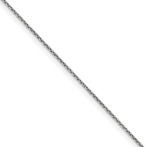 Indulge in the luxury of rhodium-plated 14k white gold with this delicate, 00.95mm cable chain enhanced with diamond-cut links. It includes a lobster-claw clasp and the solid link design is perfect for lightweight gold charms or pendants. 18 inches in length.