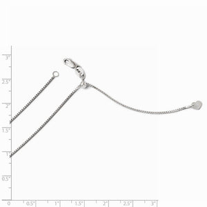 Simple, classic and ready for your favorite pendant, this delicate 14k white gold box chain is 0.9mm in width and features a slide mechanism with a lobster clasp that adjusts to any length up to 22 inches. Made in Italy.