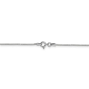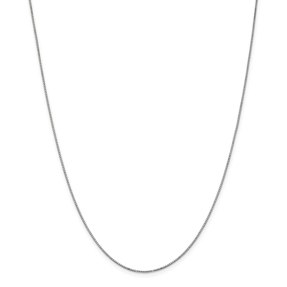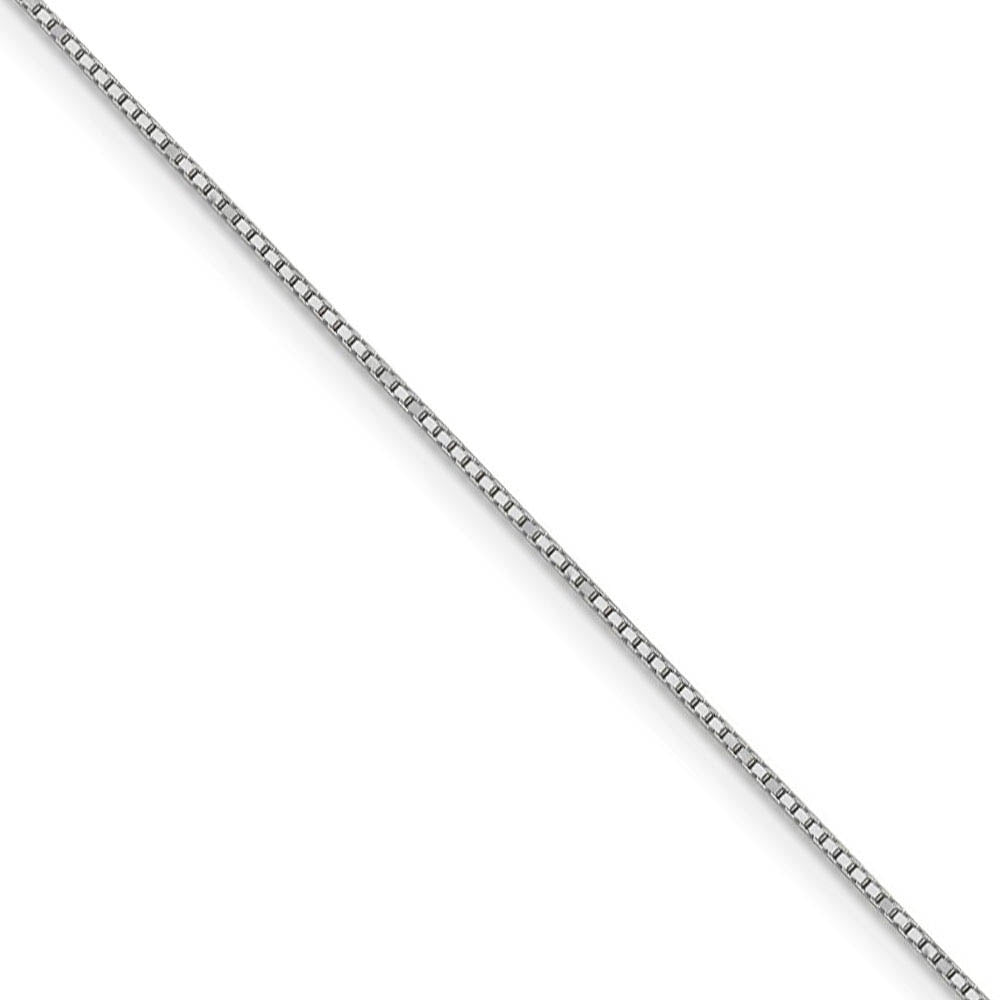 • You cannot go wrong with a traditional box chain; it offers luminous shine with a sturdy flexible design that is less prone to kinking. This beautiful 22-inch chain designed gleaming 14k white gold measures 0.9mm in width and closes with a classic spring ring clasp.