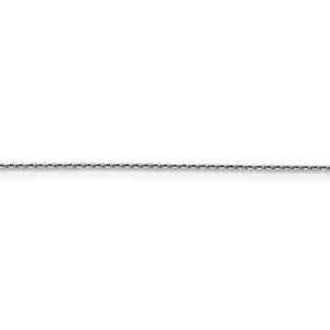 Simple traditional style, round open links of rhodium-plated 14k white gold interlock to form a beautiful cable chain that sparkles and shines in the light thanks to the diamond-cut finish. This solid link, delicate necklace is approximately 0.9mm in width, 16-inches in length and closes with a lobster claw clasp.
