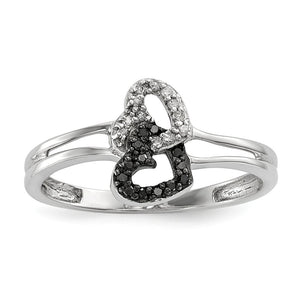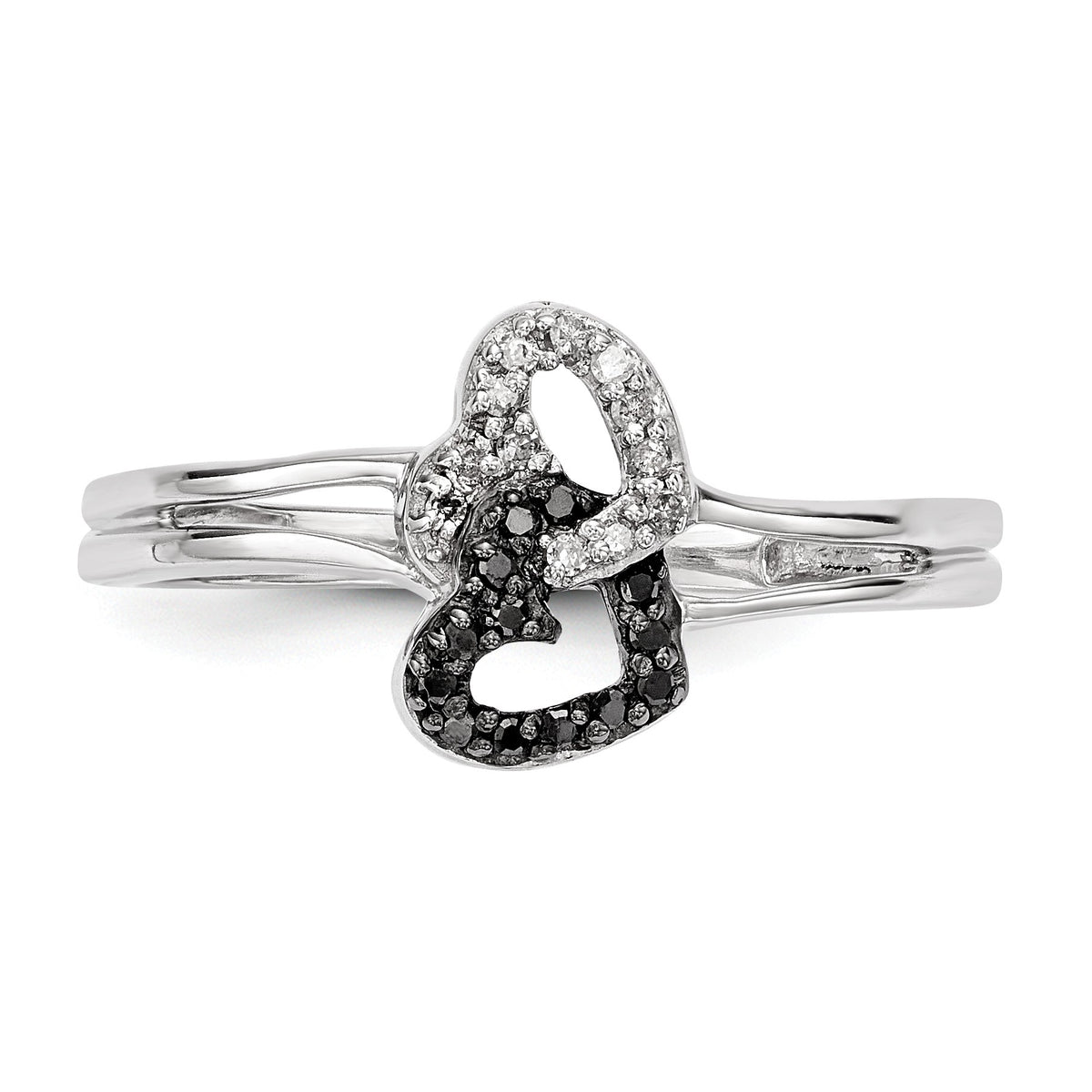 1/10 Cttw Black & White Diamond Double Heart Sterling Silver Ring