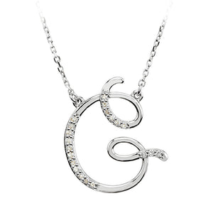 1/10 Ctw Diamond 14k White Gold Medium Script Initial G Necklace, 17in