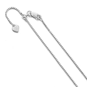 Simple, classic and ready for your favorite pendant, this delicate rhodium-plated sterling silver box chain is 1.15mm in width and features a slide mechanism with a lobster clasp. It is adjustable length up to 22-inches. Made in Italy.