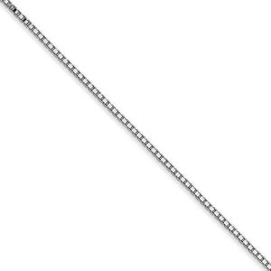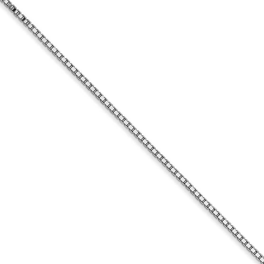 • Simple, classic and ready for your favorite pendant, this delicate rhodium-plated 14k white gold box chain is 1.1mm in width by 18 inches in length and closes with a reliable lobster clasp.
