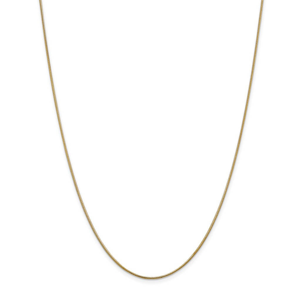 • A smooth and flexible snake chain with its classic round design will show off your favorite pendant or charm to perfection. Fashioned from polished 14k yellow gold, this solid link necklace measures 1.1mm in width by 18-inches in length and is finished with a lobster-claw closure to ensure a safe fit.