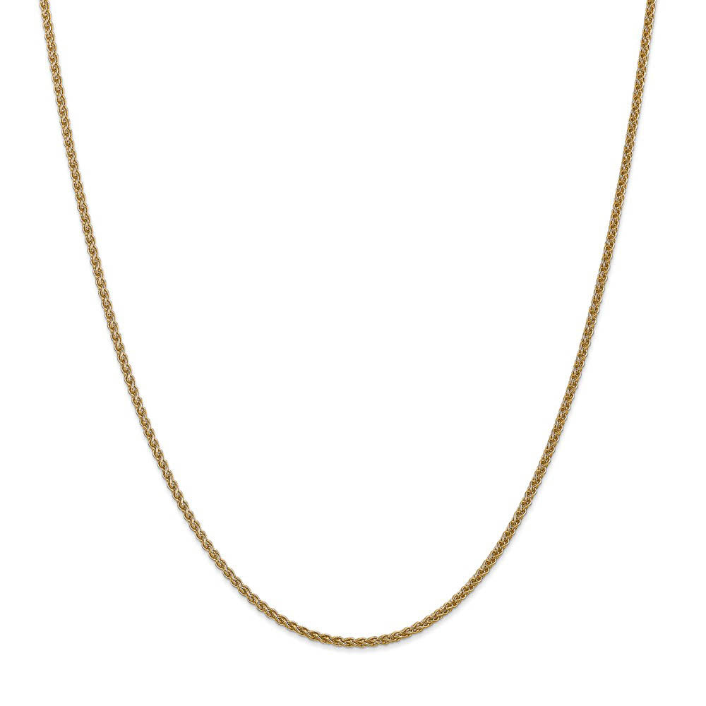 • Interwoven figure eight links of polished 14k yellow gold form a distinctive, braided design that will add elegance and beauty to your favorite charm or pendant. This delicate 1.1mm wide, 18-inch long solid spiga chain necklace closes with a classic spring-ring clasp.