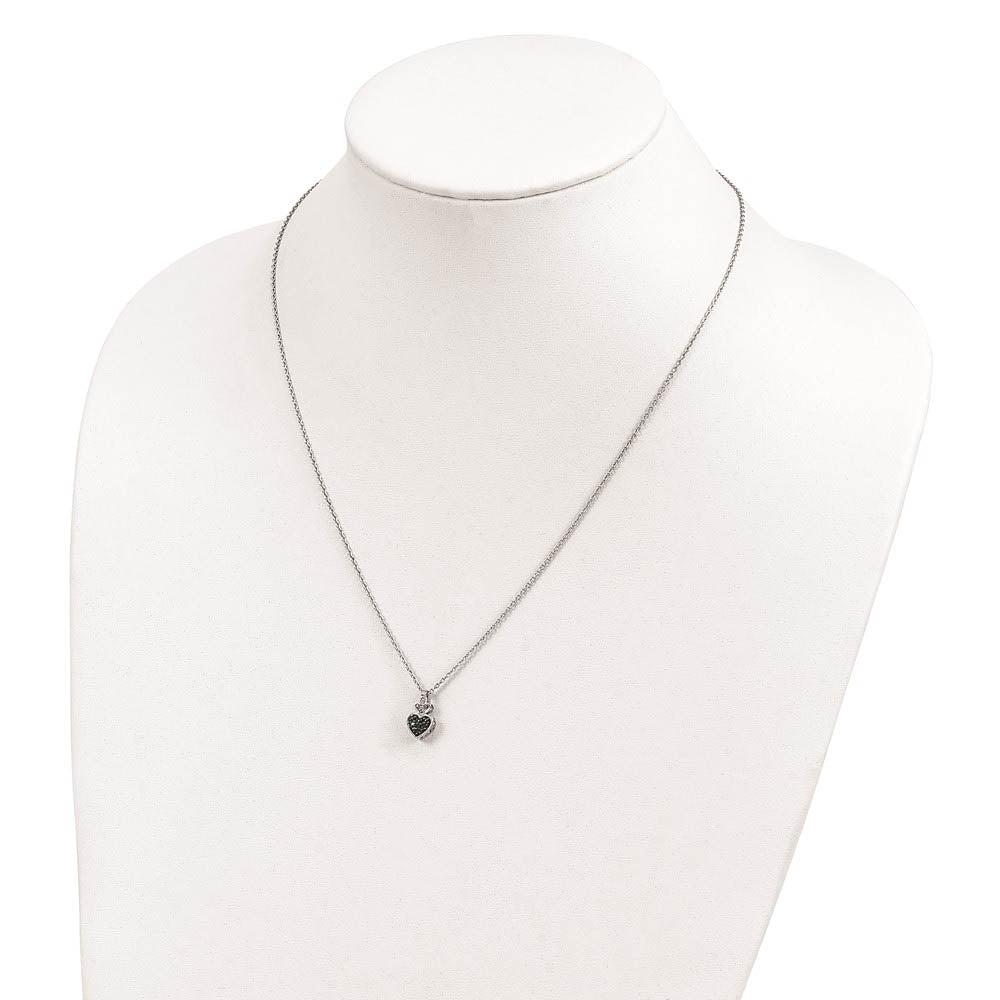 1/20 Ctw Black & White Diamond Small Heart Necklace in Sterling Silver - Black Bow Jewelry Company