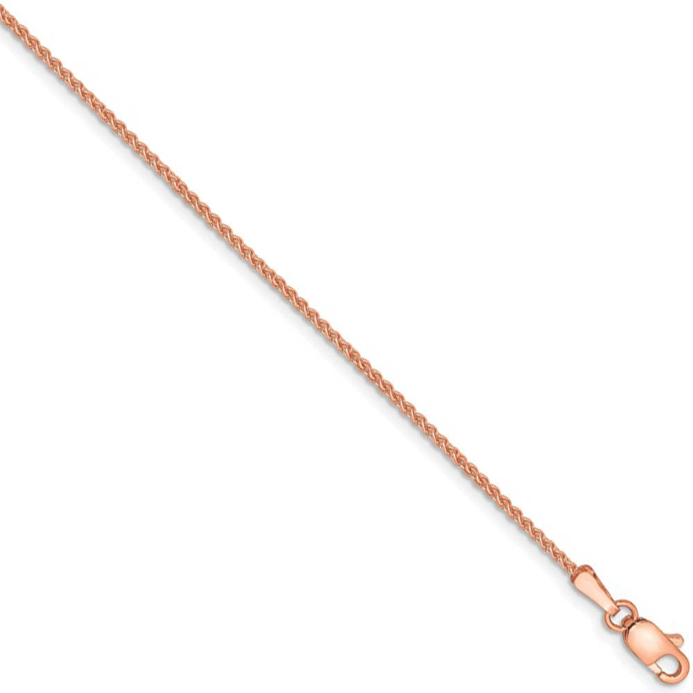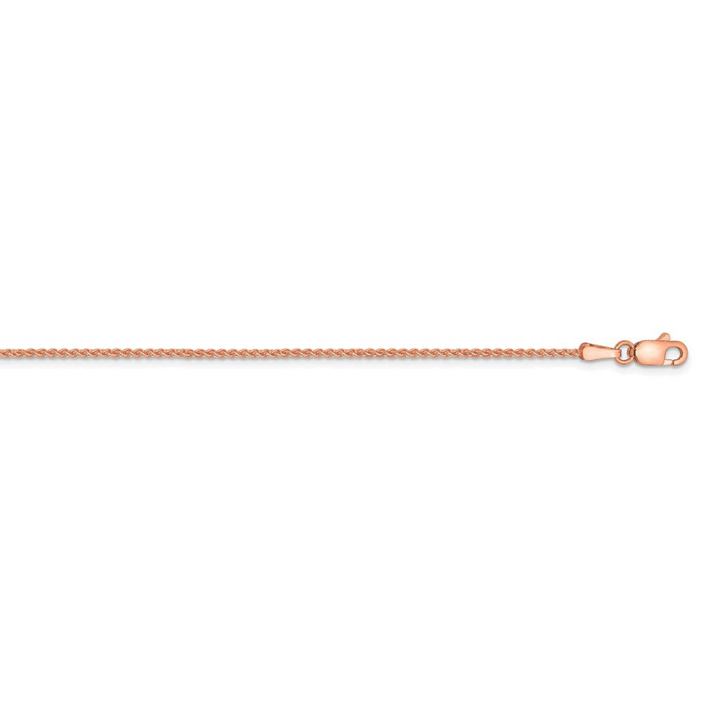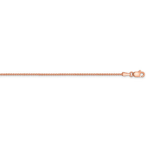 Interwoven figure eight links of polished 14k rose gold form a distinctive, braided design that will add elegance and beauty to your ensemble. This 1.25mm wide, 18-inch long, solid link spiga chain necklace closes securely with a lobster claw clasp.