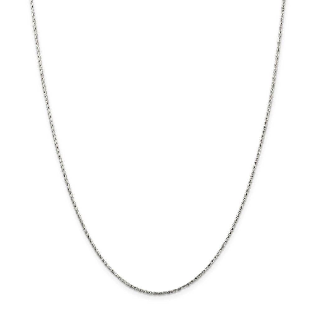 • This solid link, 1.25mm width by 24-inch long, round Parisian style wheat chain is made from polished rhodium-plated 14k white gold and closes with a lobster claw clasp. Made in the U.S.A.