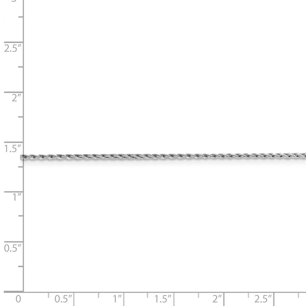 • This solid link, 1.25mm width by 18-inch long, round Parisian style wheat chain is made from polished rhodium-plated 14k white gold and closes with a lobster claw clasp. Made in the U.S.A.